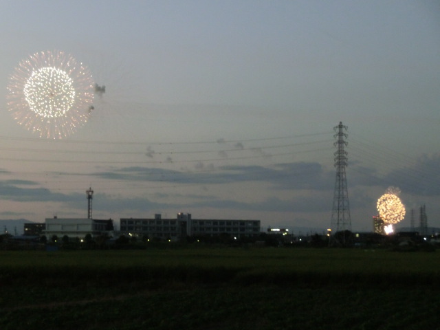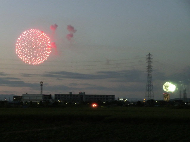夕暮れ、岡崎市花火大会の轟音が響いてきたので、近所の田圃までフラッと散歩してきました。
