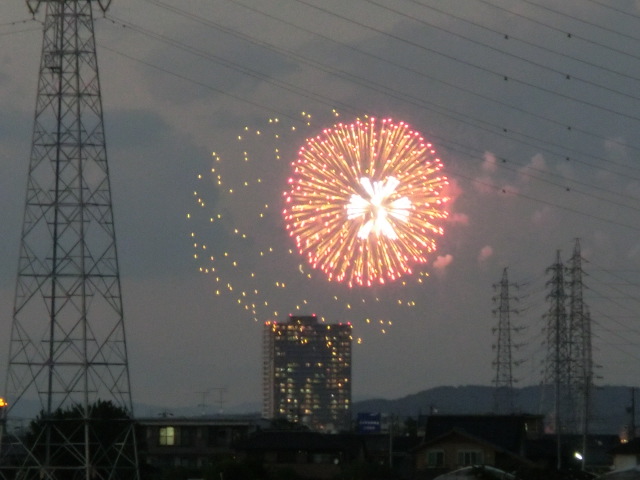 人混みも無く、いい風が吹き抜ける広々とした場所で、暫し花火見物をしてきました。