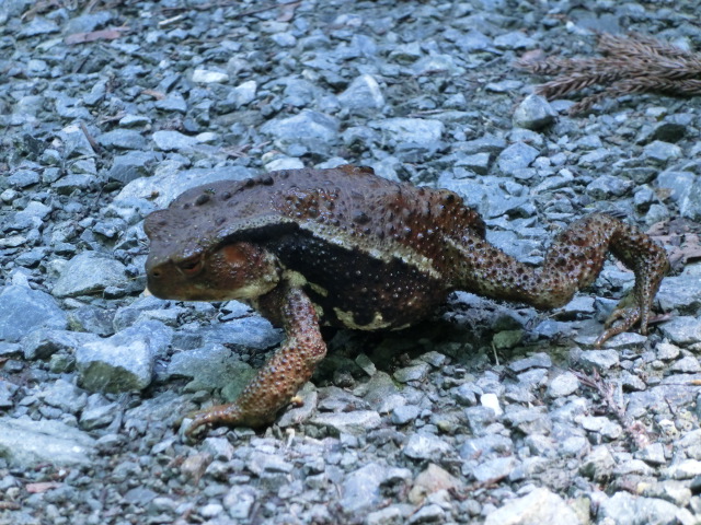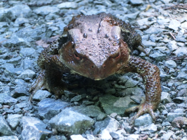 帰路では、親分の風格を漂わすガマガエルが固まっていました。