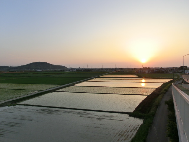 田圃の水面が水鏡になり、周囲の風景や空が映し込まれている景色は、とても奇麗でした。
