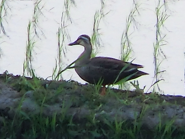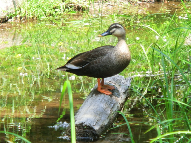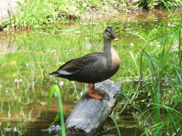 先日、アサザやコウホネを観察していた際、振り返ると1羽のカルガモが静寂の湿原にたたずみ、こちらを見ていました。(◎o◎)!