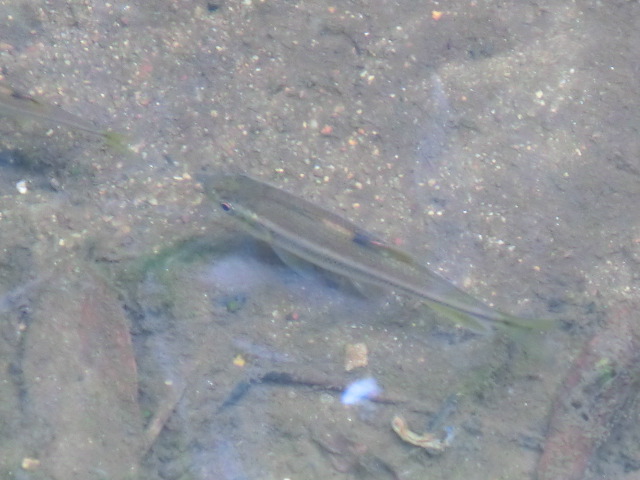 シリビレが大きく体側に1本黒い縦線が入っているので、カワムツだと思うのですが・・・謎?
