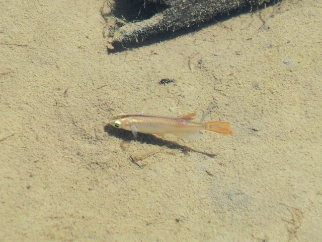 小魚は、心なしか大きくなっている様で、尾鰭と背鰭がオレンジかがっている個体と、そうでない個体があり、前者の方が後者より少し大きい様な印象があります。