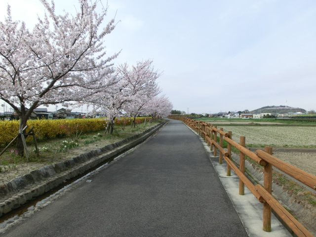 遊歩道には桜並木があり、春には桜を愛でながら散歩ができ、八ツ面山の桜の様子も楽しむことが出来ます。