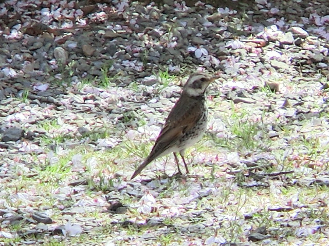 食べ物を探しているのか、地上を歩いたり跳ねたりしながら、キョロキョロしていました。
