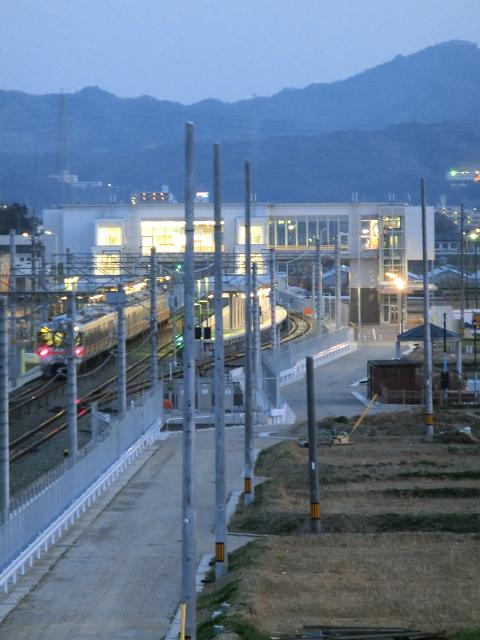 3月17日にJR相見駅が開業し、駅舎からは灯りが放たれていました。