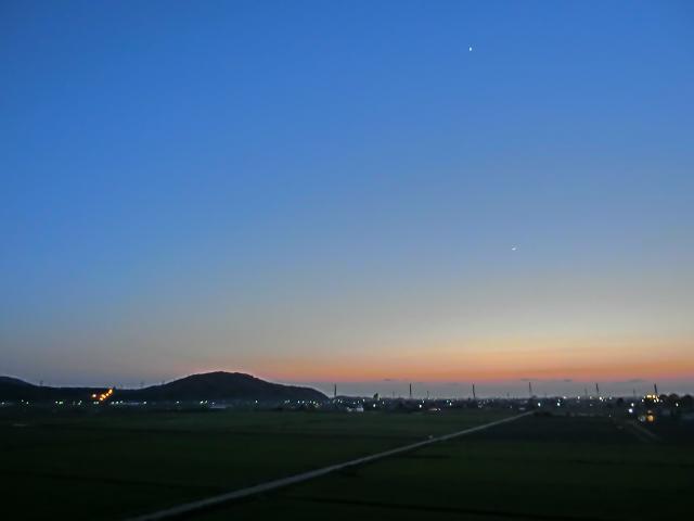 天気予報では曇り時々雨の予報でしたが、会社に到着後間も無くザッと雨が降り出し、日中は晴れ間も見える天候となり、夕暮れは雲の切れ間から夕日や星々も覗けました。