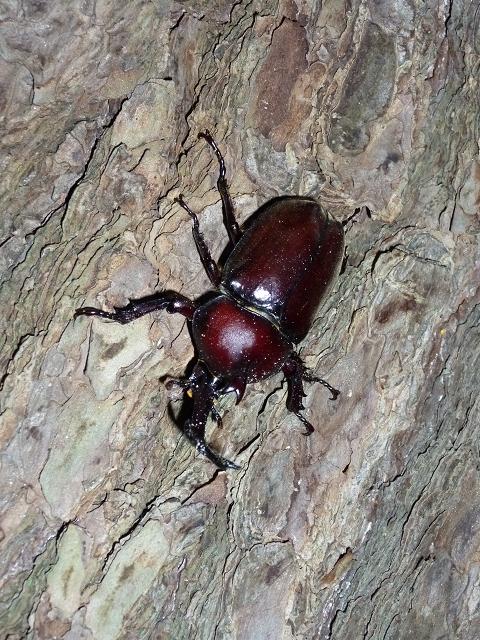 今朝は、公園でストレッチをしていると、カブトムシがブ~ンと飛んで来て、目の前の松の木にピタッととまりました。
