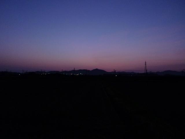 雲が無いので迫力には欠けますが、簡素で静寂を感じる落ち着いた朝焼けでした。