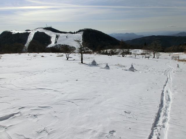 先日、東斜面(左写)と南西斜面(右写)に描いたシュプールは、すっかり消えていました。