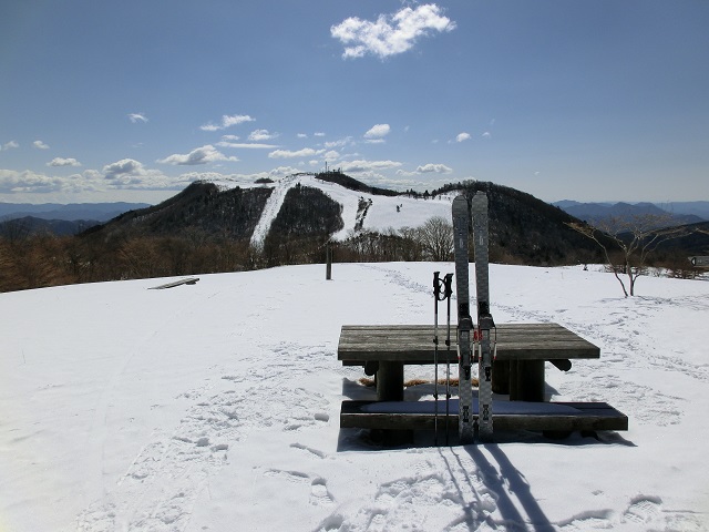 滑りやすいザラメ雪で、日当たりの好い丘では所々地表が現れていました。