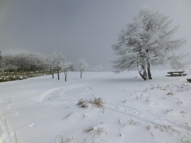 霧氷を眺めながら、柔らかい雪質を堪能しました。