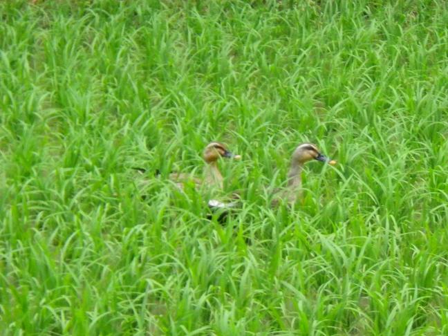 左手の田んぼでは、カルガモ夫婦が仲良く泳いでいました。(中写)