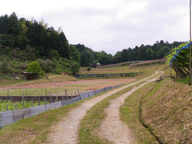 分岐は右へ進み、ブドウ畑の中を進みます。(右写)
