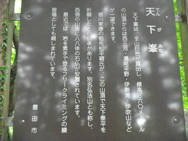 先日、王滝渓谷を散策した際に天下峰(360m)へ登りました。