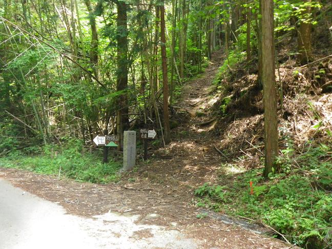 暫く舗装路を歩いていると、近道の入口がありましたので、こちらに進みました。(左写)