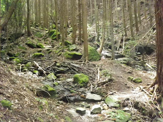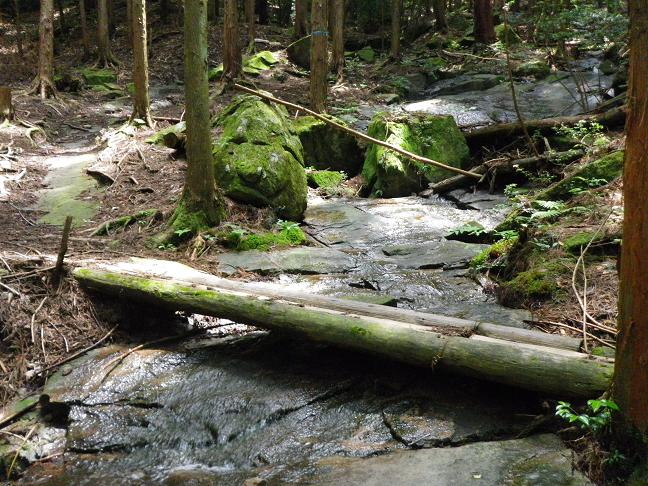 小沢に架かる木橋を渡り、左岸へ進みます。(左写)