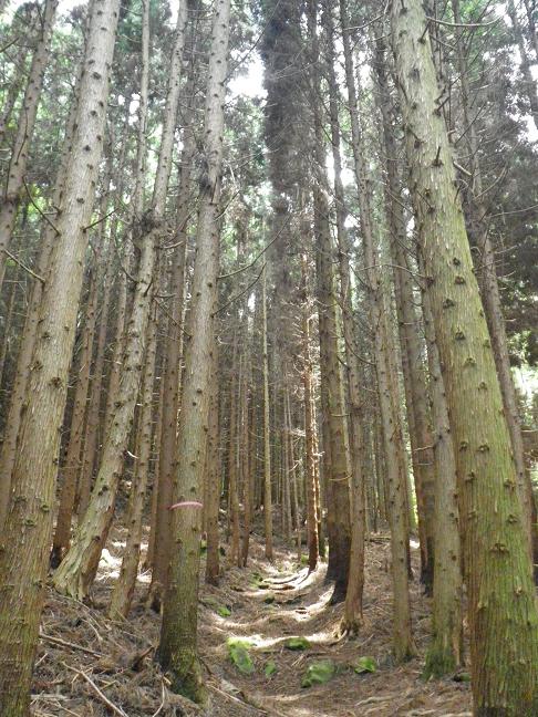 木漏れ日が美しい、山頂へのトレイルです。(左写)