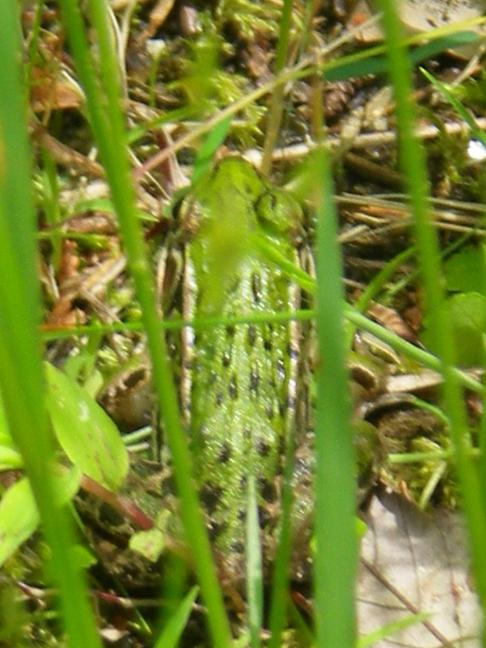 シオカラトンボ(左写)やトノサマガエル(右写)を見つけました。