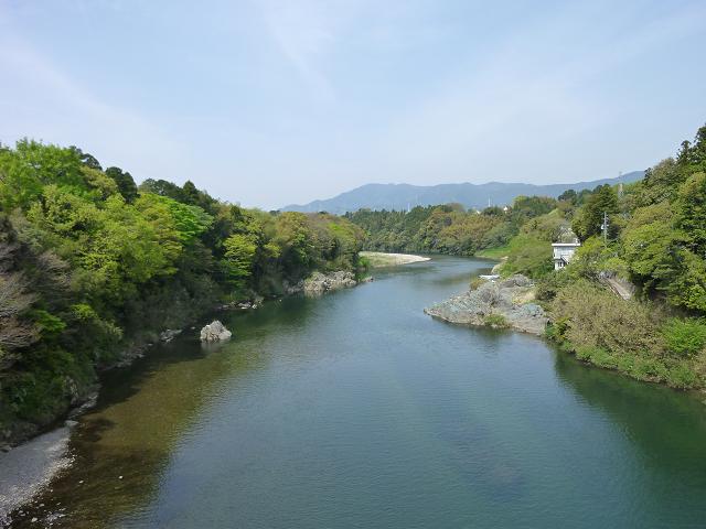 左写が豊川の下流方面で、奥に本宮山が見えます。
