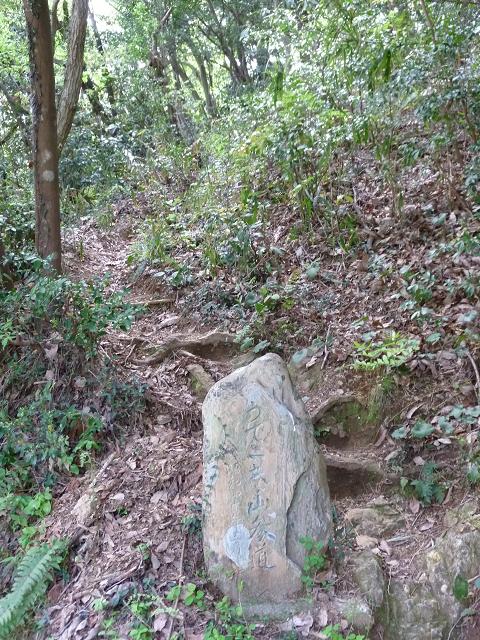 山頂からの東登山道入口です。(右写)