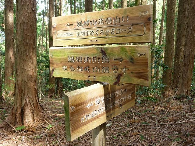 風切山西登山道と健康の道との分岐が見えてきます。(左写)