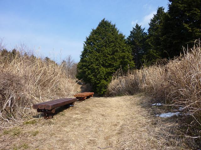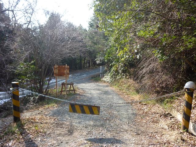 ベンチがあるポイントを過ぎて、少し進むと扇山林道に出ます。