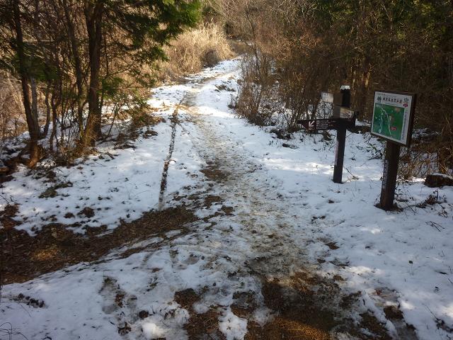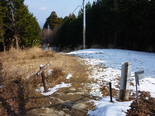 鉄塔の裏へ周ってみると、陣座峠と瓶割峠へ続くトレイルの分岐がありました。