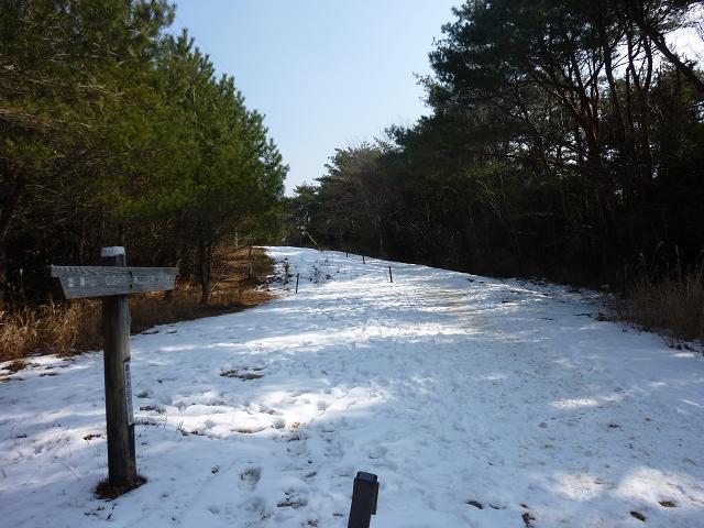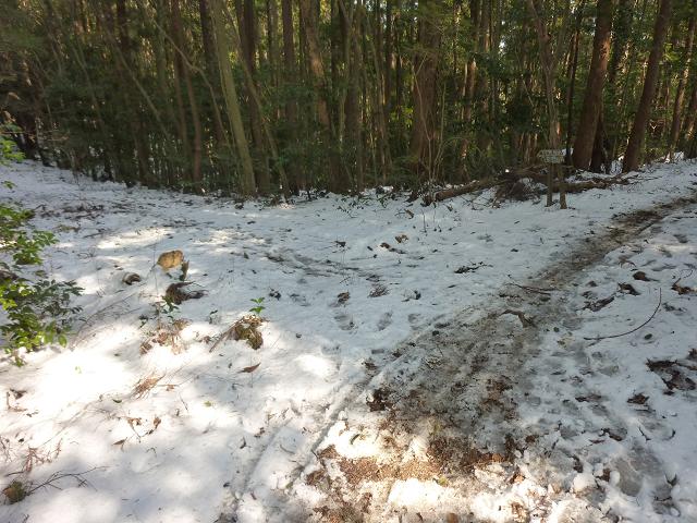山頂から1.2kmほど下ったところで林道に出ました。