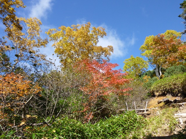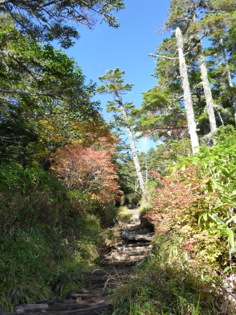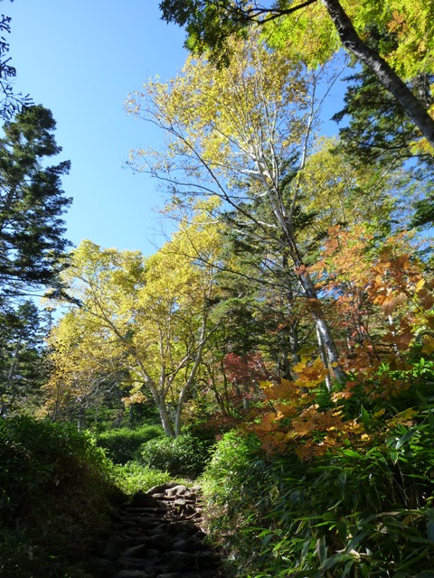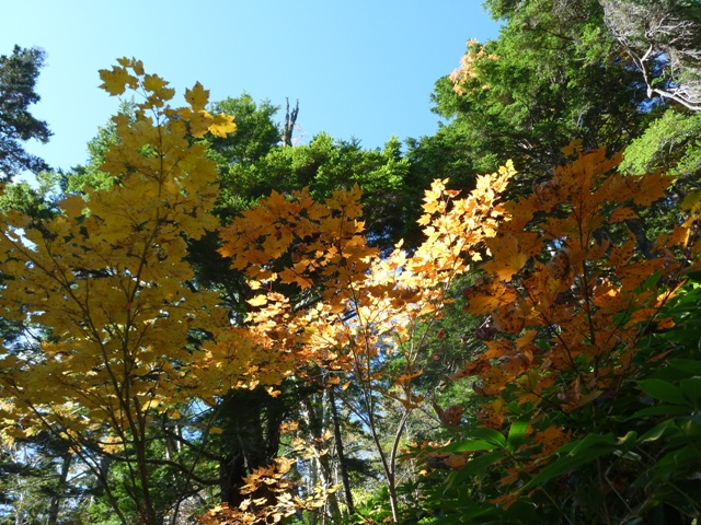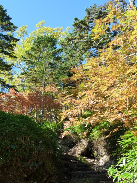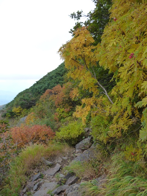 八合目に近づくにつれトレイル沿い紅葉が鮮やかになり、増えて行きました。