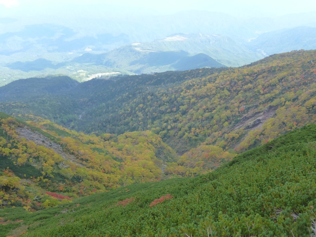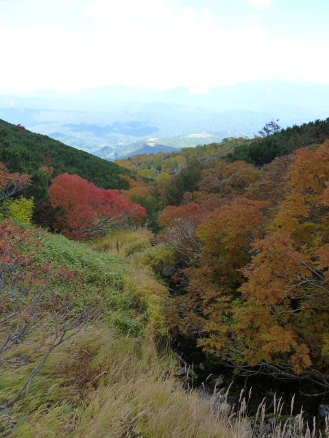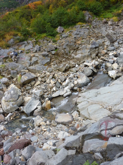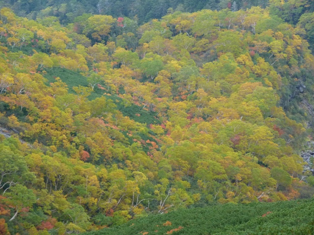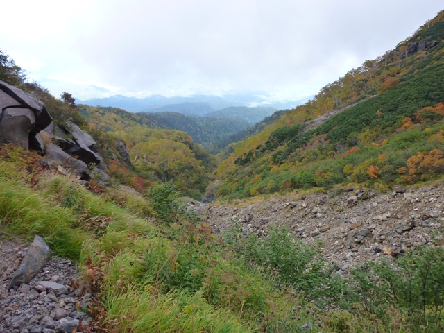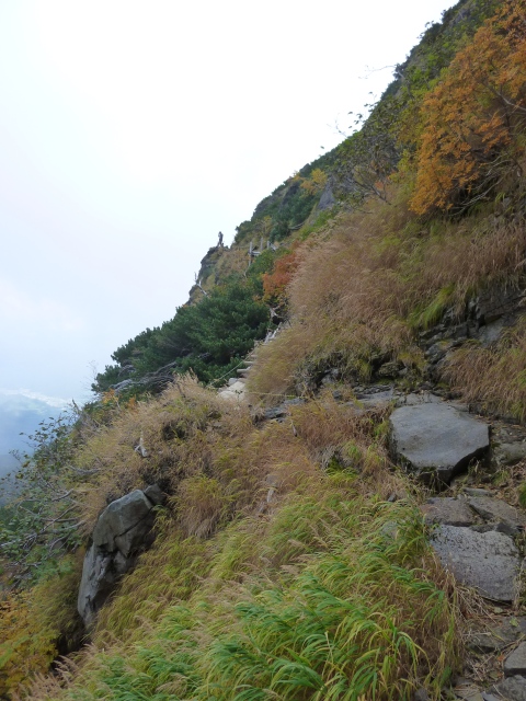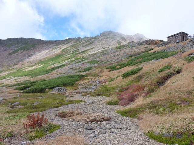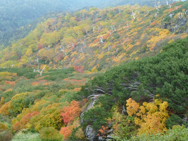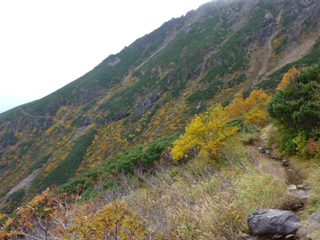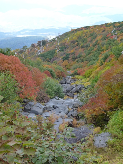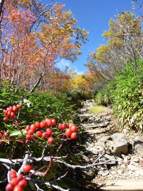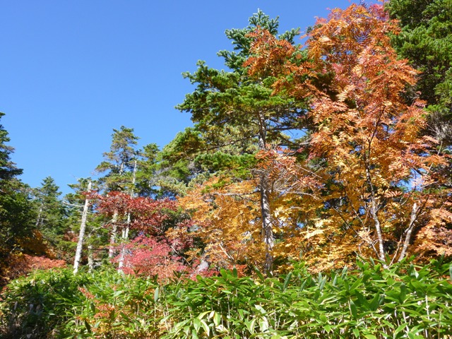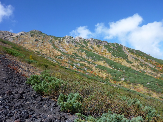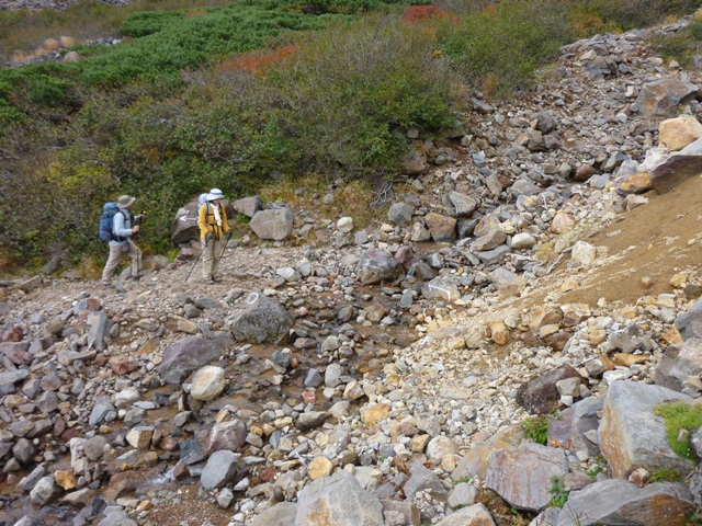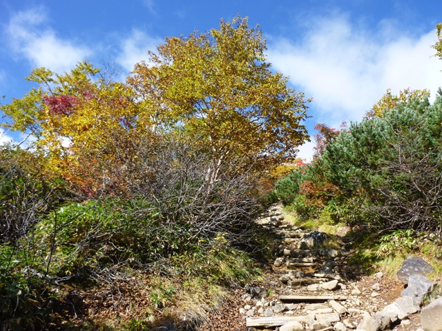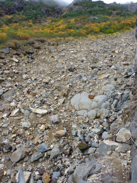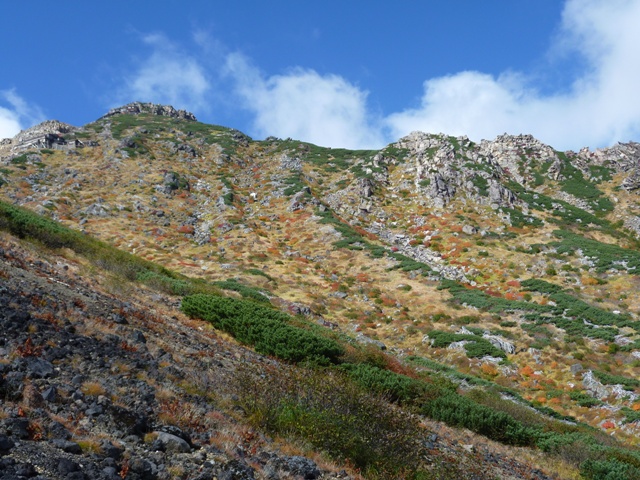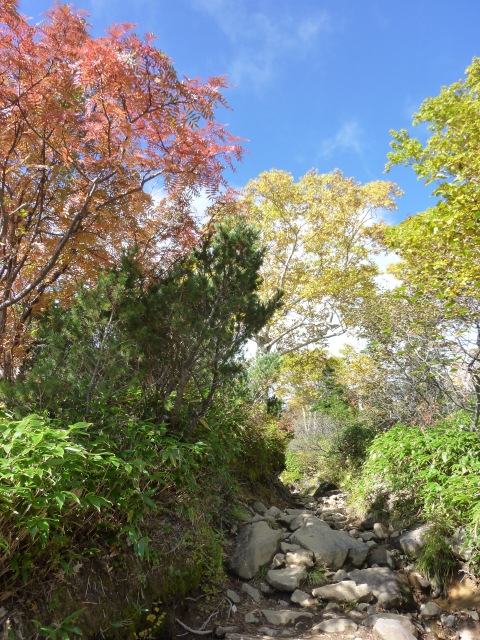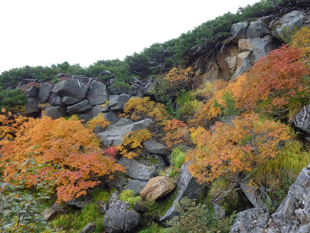 三の池方面は木々が密に生えている印象ですが、こちらはガレ場が多い印象で、こういう感じの紅葉も好きです。