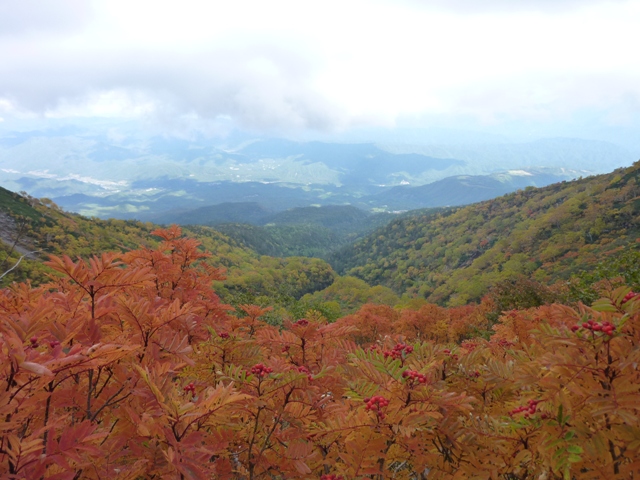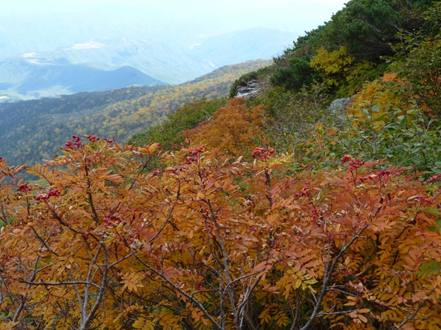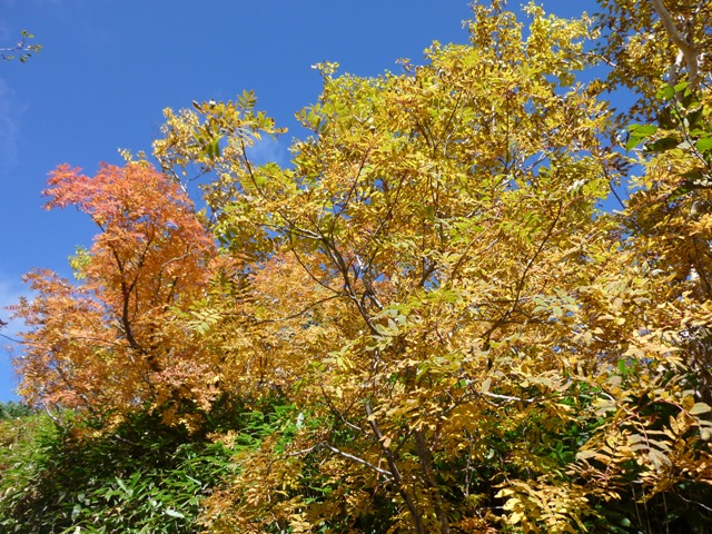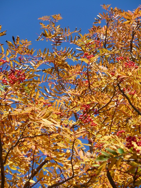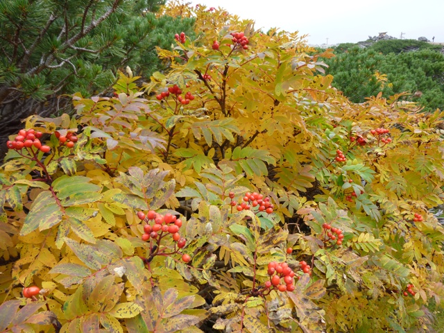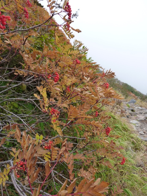 色づく前と燃えるように色づいたナナカマドが、同じ様な場所に生えていました・・・不思議。