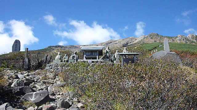 賽の河原の左側には摩利支天山(左写)、右側にはアルマヤ天(右写)がたたずんでいます。