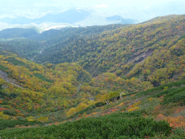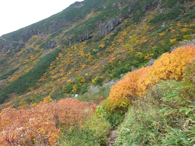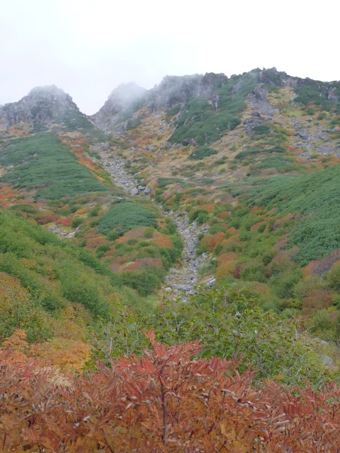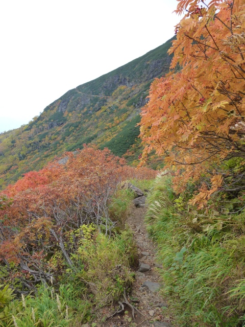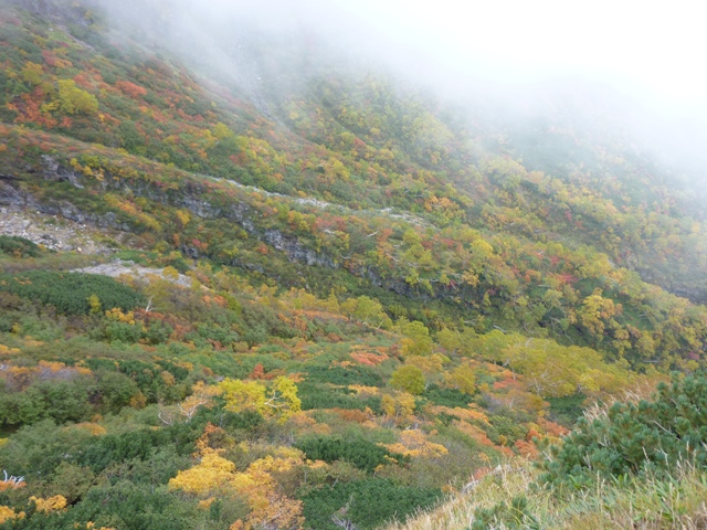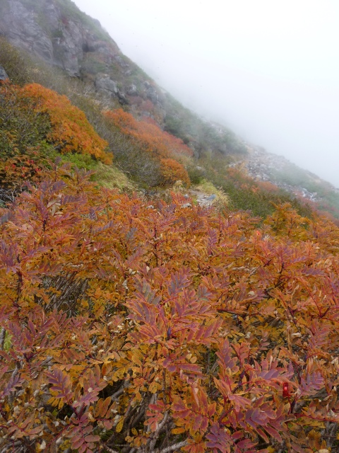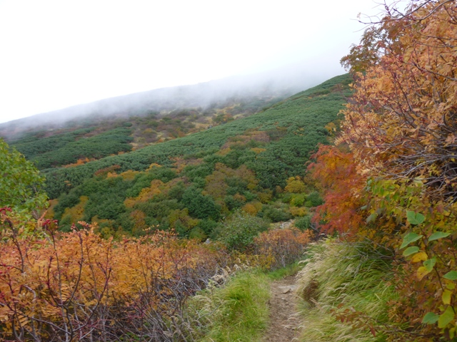 トレイルに美しい紅葉があると、ガスが出ていても気分が和みます。