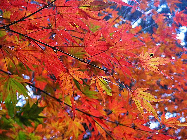 色付くイロハモミジの樹が増えてきました。