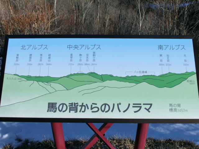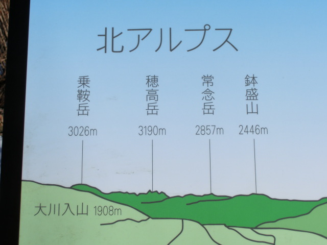 馬の背には展望地が設置されており、隣の大川入山、北ア、中央ア、南アが見渡せました。