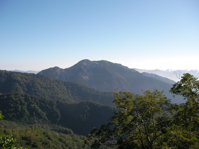 その左側には大白水谷と三方崩山雄大な姿が認められ(左写)