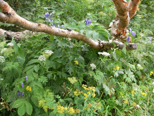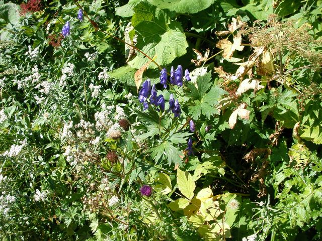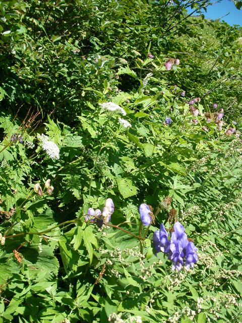 マツムシソウ(左写)、ハクサントリカブト(中写)、ミヤマキンポウゲ(右写)