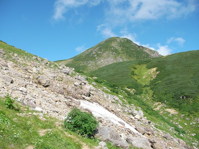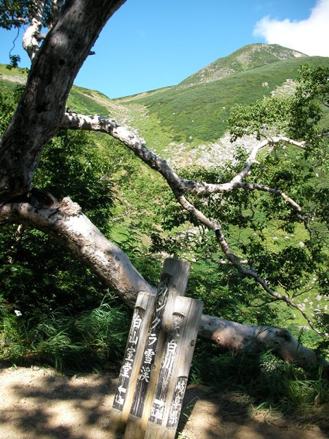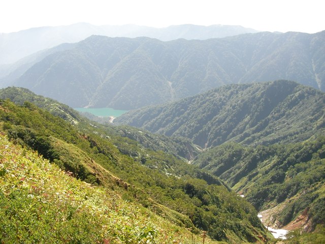 右側には雪渓を残すゾロ谷が白水湖へと続いています。(右写)