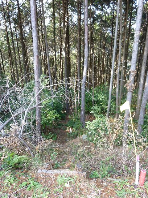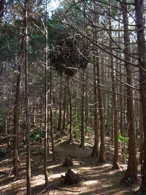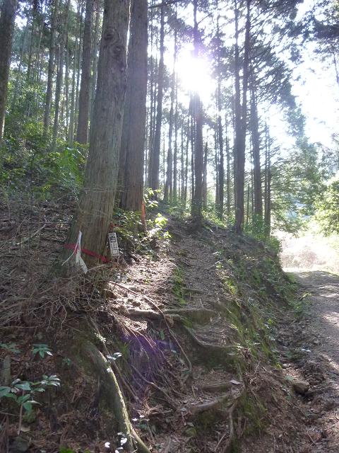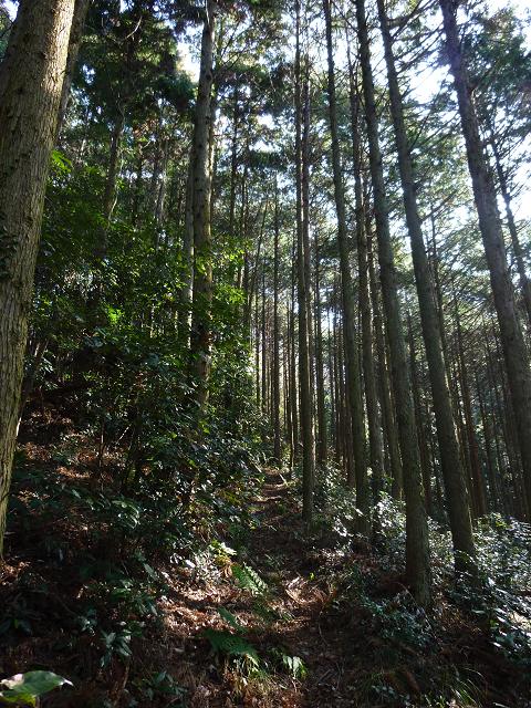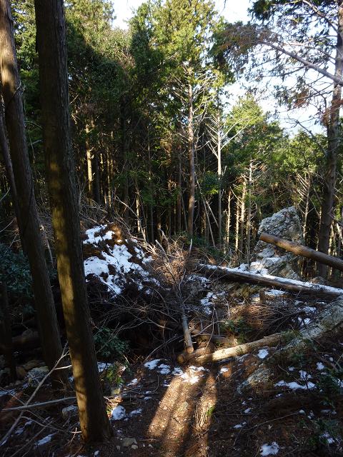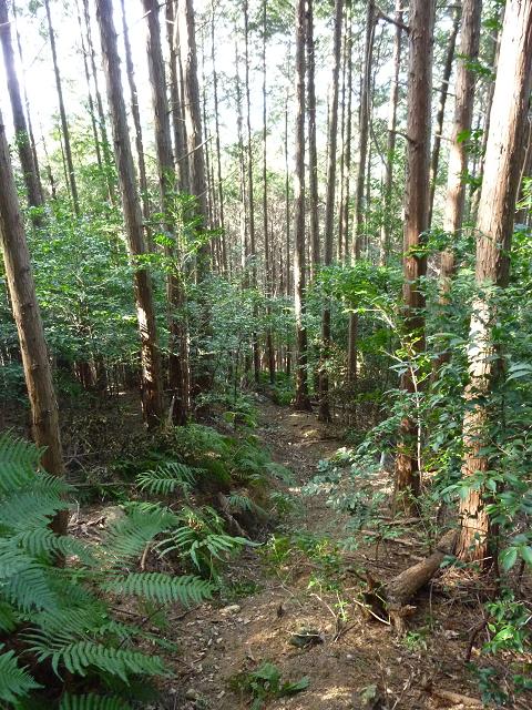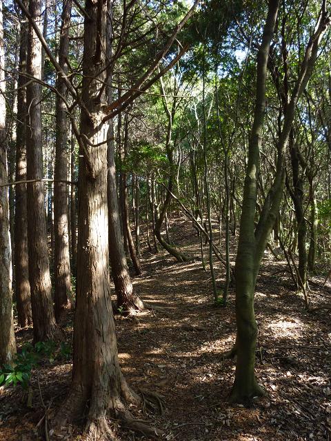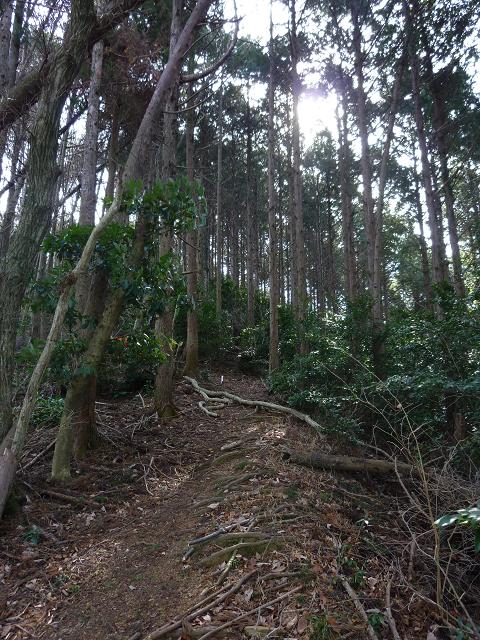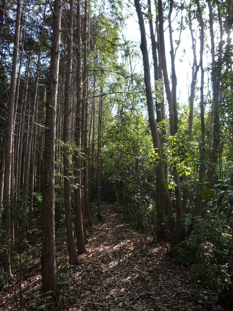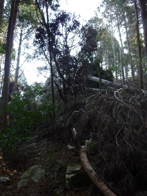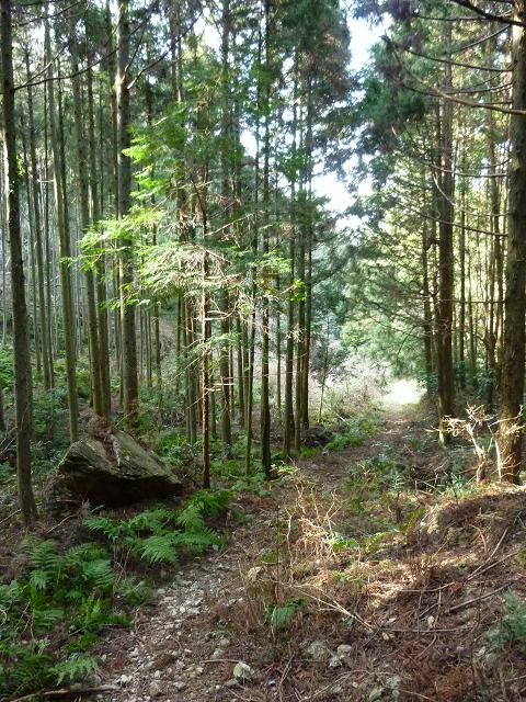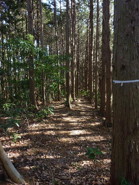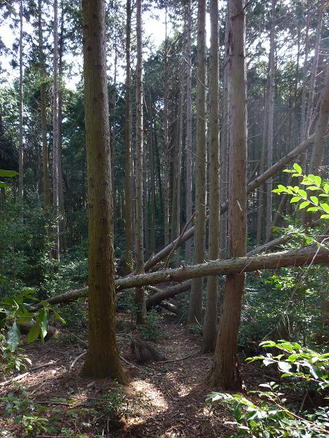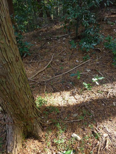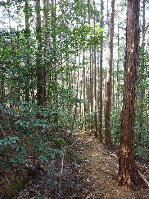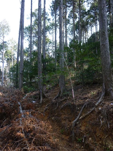 空堀状のトレイルに、杉の枝が溜まり、ちょっと歩きにくかったです。