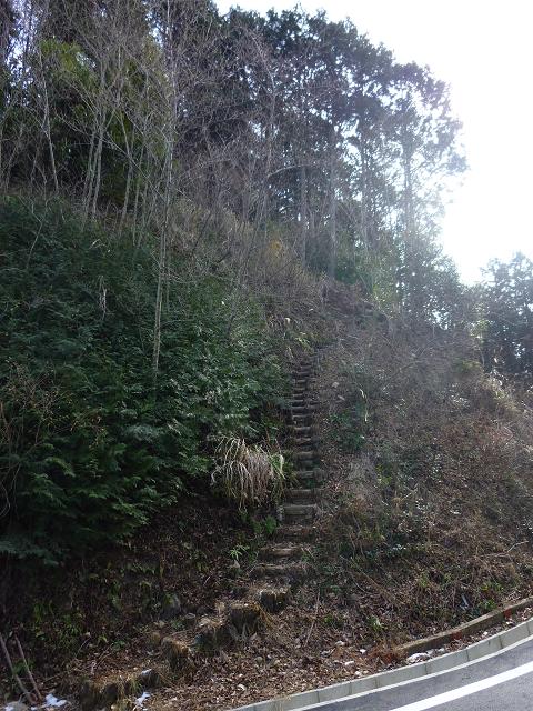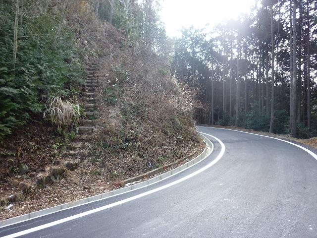 林道の反対側に、階段状にトレイルが整備されていました。(右写)