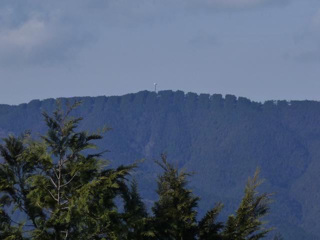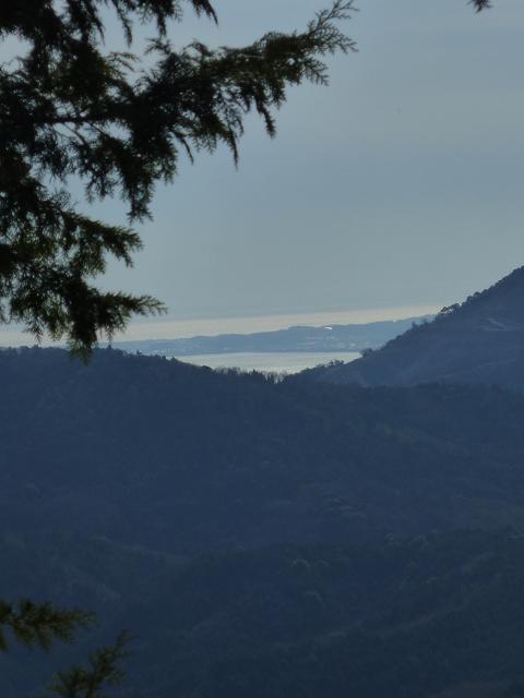 木々の向こうに見える山々は、鳳来寺山方面かな?