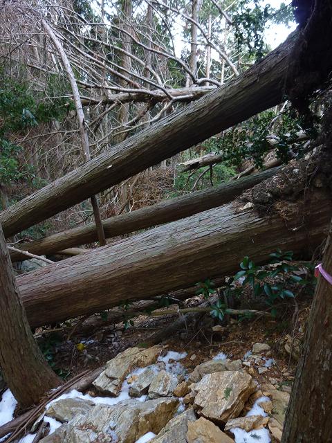 くびら岩周辺も倒木だらけで、乗り越えて進みます。