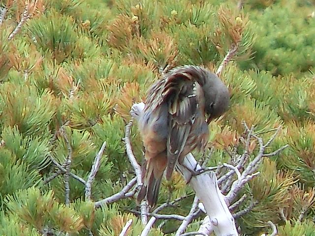 羽根や羽毛のお手入れに夢中で、ちょっとボサボサ。