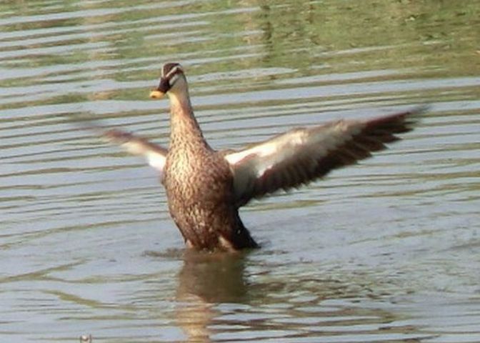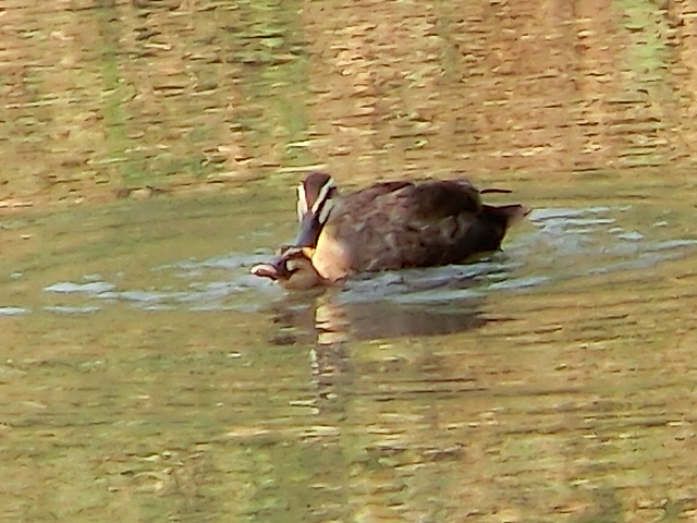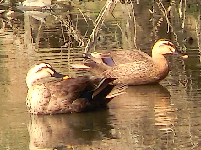 田圃の脇を通る用水路を覗いてみると、たまにカルガモを見かけます。