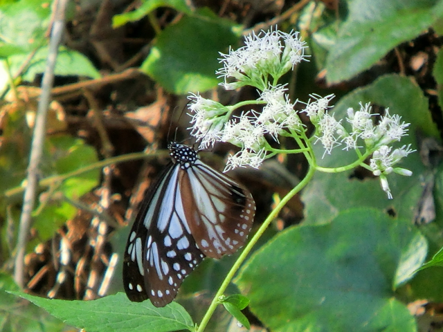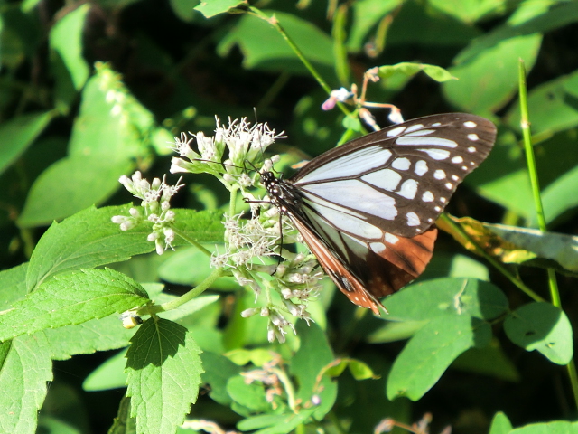 朝の澄んだ秋空の下、ヒヨドリバナに誘引され舞い飛んできたようです。