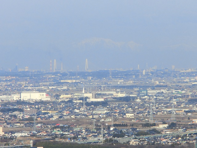 少し霞んではいましたが、冠雪を纏った鈴鹿山脈や養老山地?、伊吹山、御嶽山、中央アと恵那山、南ア等を眺めることが出来ました。!(^^)!