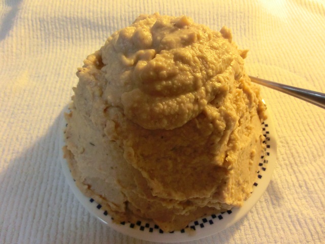 茹でた大豆をミキサーにかけ、ペースト状にしたところです。(右写)