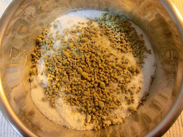 豆麹50g、米麹175g、麦麹300g、塩300gを用意しました。(左写)