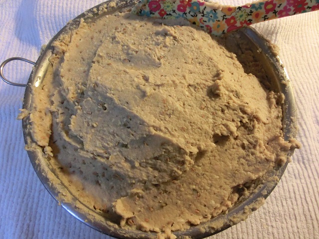 ペースト状にした大豆と、用意した麹と塩を混和したところです。(中写)